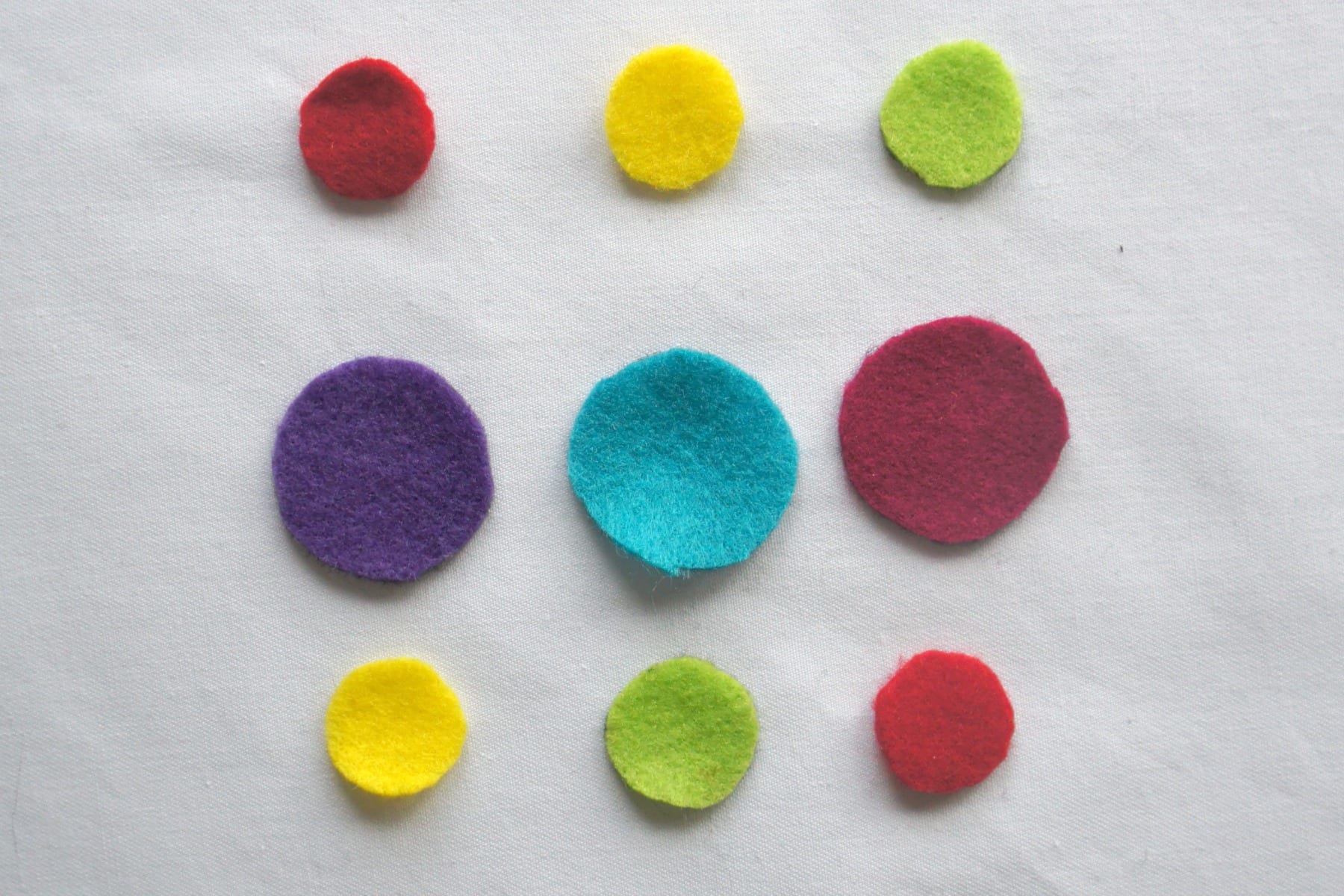 I then raided my felt stash and cut out circles from lots of different colours.